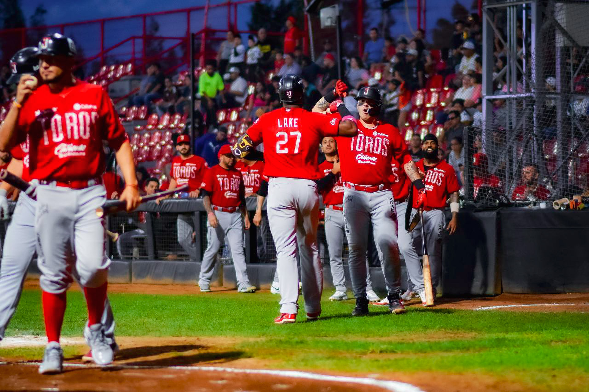 Una más cayó para los astados en los spikes de Junior Lake quien, luego de ponerse en base con ponche y “wild pitch”, llegó a tercera con par de jugadas de selección, para finalmente pisar el plato con otro lanzamiento descontrolado que se convirtió en la quinta rayita de la visita.
