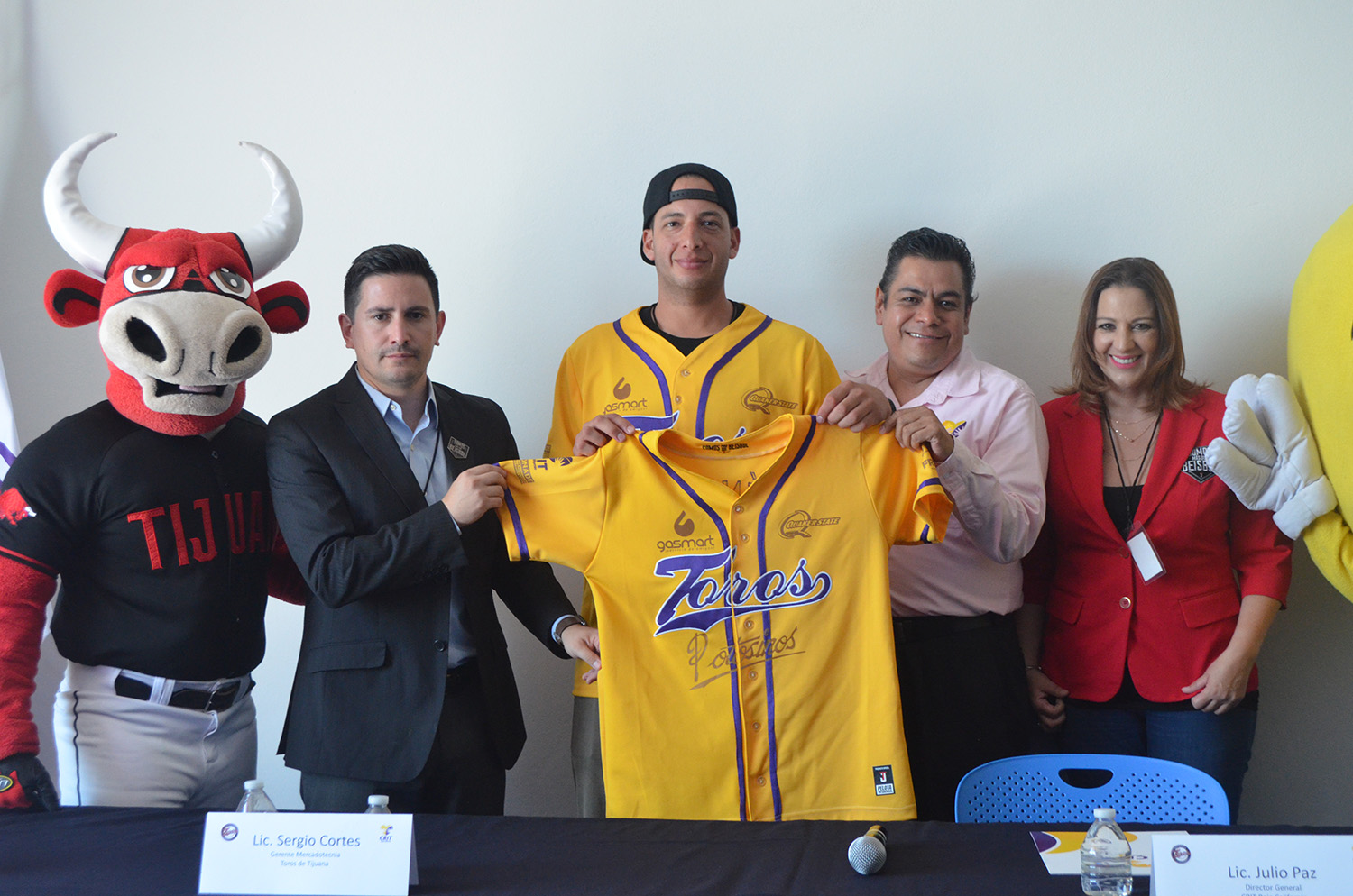 En el presidium estuvieron Alex Sanabia, lanzador de Toros de Tijuana, el Lic. Sergio Cortés, gerente de mercadotecnia del Club, el Lic. Sergio Paz, Director General de CRIT Baja California y la Lic. Nelly Sanoja, Gerente de Relaciones Públicas del equipo fronterizo.