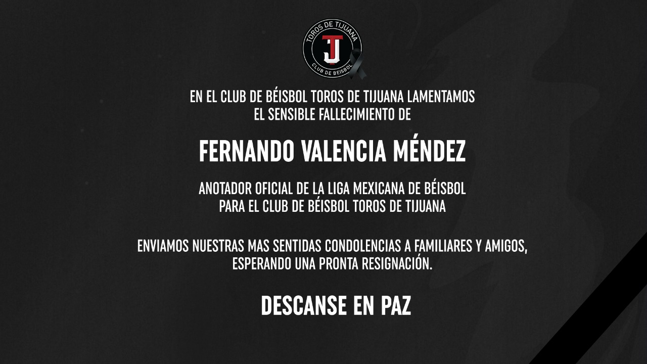 Descanse en Paz Fernando Valencia Méndez. En el Club de Beisbol Toros de Tijuana siempre te recordaremos.