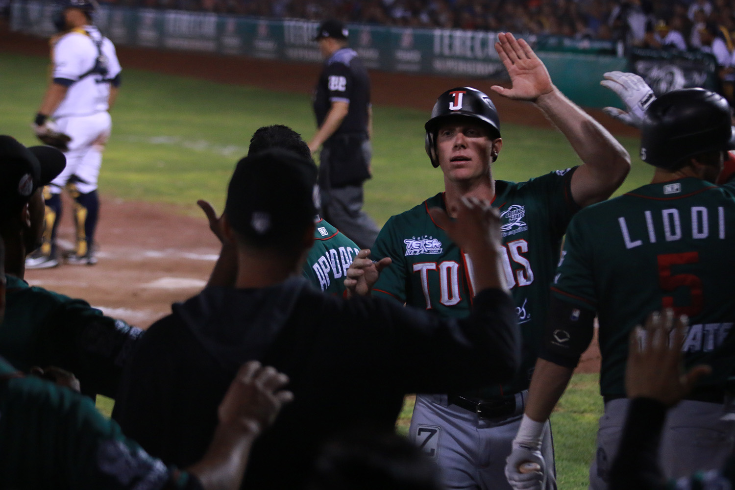 Enseguida tocó turno al emergente Óscar Robles, quien recibió base por bolas en un gran turno y luego de ponche a Alex Liddi los Toros de Tijuana se fueron adelante por primera ocasión en el partido cuando Juan Apodaca vio pasar cuatro bolas consecutivas, anotando Cyle Hankerd el 4-3 que perduró hasta el final.