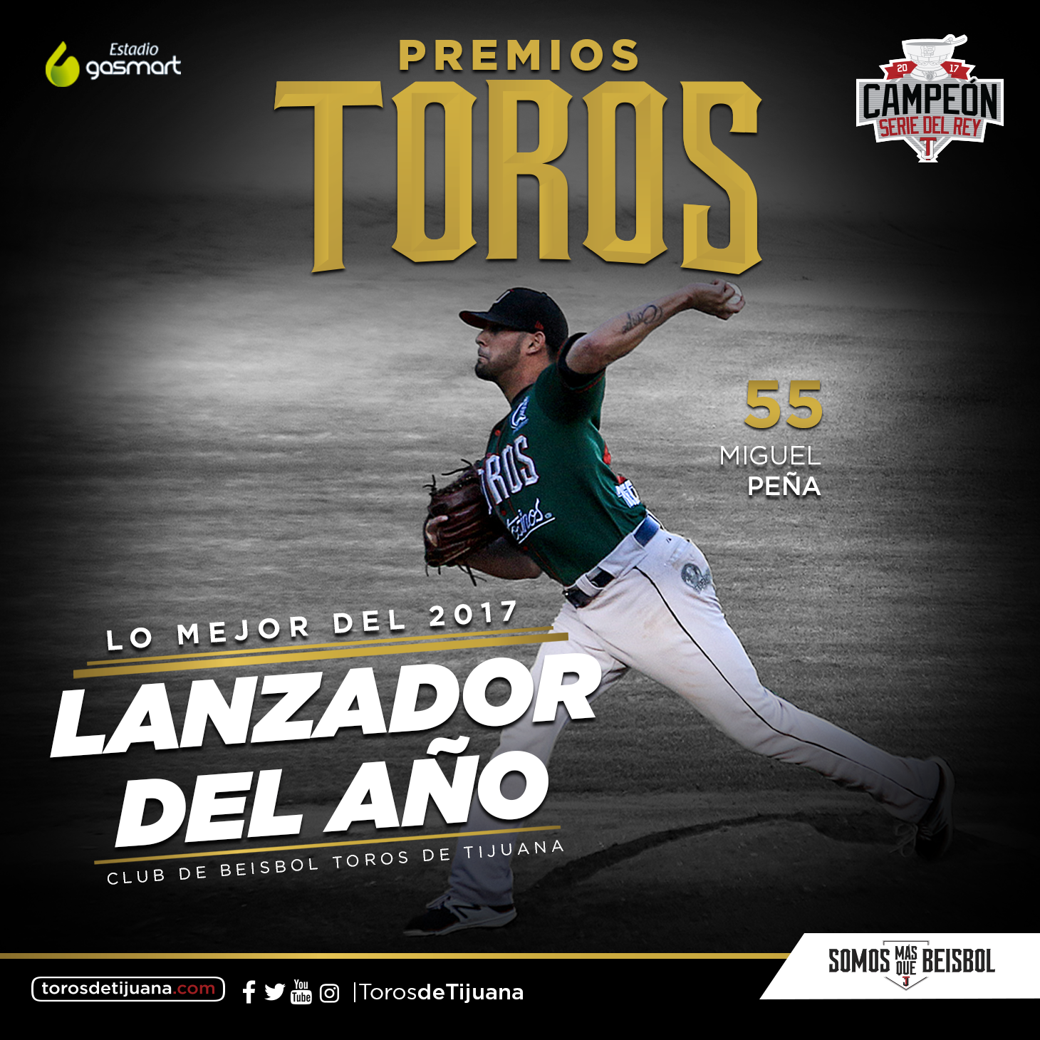 TIJUANA, Baja California (TorosDeTijuana.com-Armando Esquivel) 12 de octubre del 2017 – Por segundo año consecutivo, Miguel Peña fue designado como “Lanzador del Año” de Toros de Tijuana en la temporada 2017 de la Liga Mexicana de Beisbol.