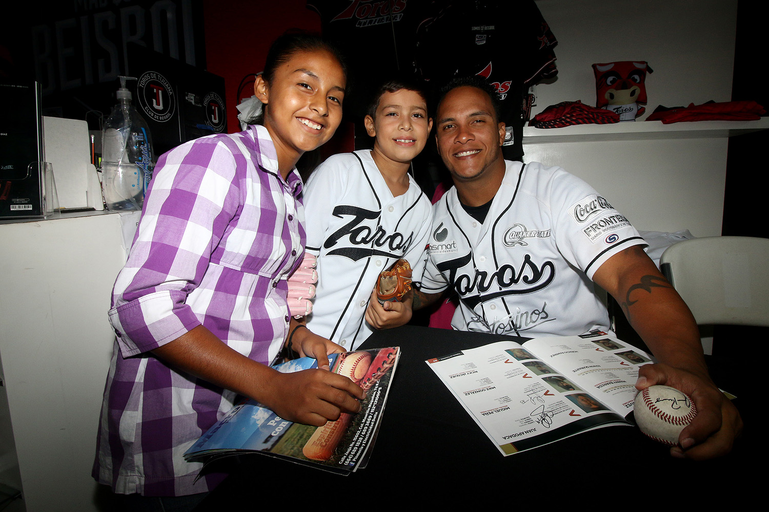 TIJUANA, Baja California (TorosDeTijuana.com-Héctor Rivera) 24 de agosto del 2016 – Fotografías, firmas y la buena vibra de la afición se hicieron presentes en Toroshop Macroplaza para la firma de autógrafos de los Toros de Tijuana.